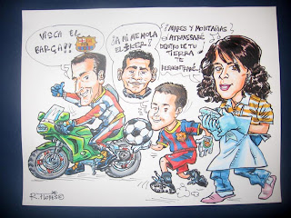 En este caso comenzamos el año 2011 con otro encargo de una caricatura a color como regalo para una familia, padres e hijos. El tamaño de dicha caricatura, pintada a mano con acrílicos y rotuladores, es 42 x 29.7 cms. Las fotos muestran el paso, desde el abocetado a lápiz hasta el paso a rotulador y luego el color, acrílicos y rotuladores.